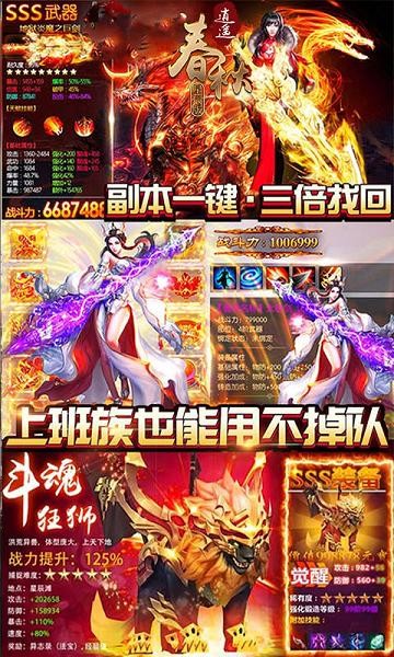 上线送满v,送88888元宝、送充值卡《逍遥春秋星辰版送充值卡》是一款以畅快战斗为核心的RPG仙魔手游,游戏以细致的地图场景、精致的人物角色基础,全面构筑起史诗般东方魔幻世界。高清画质,精美模型;多样副本,奖励丰厚;神兽降临,法宝问世;跨服玩,称霸大陆!全民参战冲击你的血液,开放战斗满足你的激情!