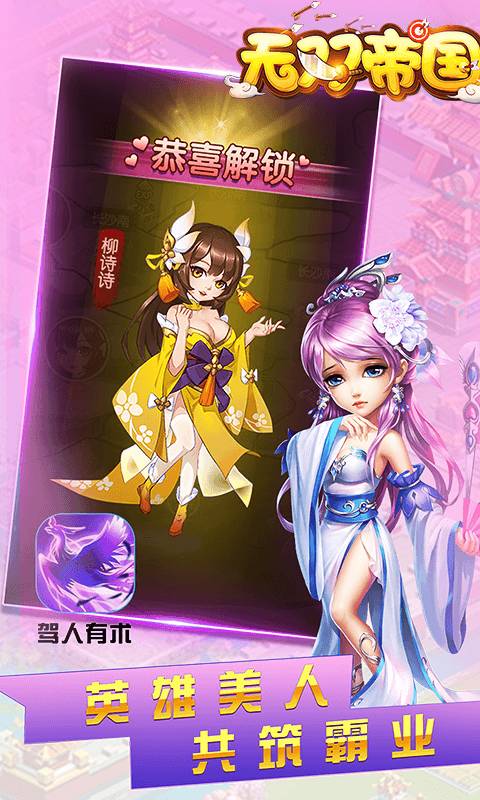 无双帝国》是一款Q萌画风的策略卡牌RPG游戏,集合了武将、装备、红颜等收集养成玩法,排兵布阵、技能搭配等策略玩法,独特的战斗表现及丰富的军团、跨服玩法于一体。故事背景发生于混沌元年,彼时中洲大陆天现异象,时空扭曲,历代帝王将相穿越至此,由于气机紊乱,英雄发生魔变,失去心魄,引发乱战四起,民不聊生。在《无双帝国》中您将统领帝王将相,召集强大的英雄,寻找时空紊乱的根源,平定这乱世,让威名远扬!