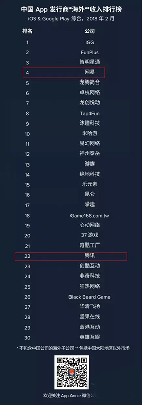 回看今年年初 2 月的出海厂商收入排行榜,网易排名第四,而腾讯排名更是靠后(第 22 名)。而在去年出海游戏收入排名中,《阴阳师》刚好名列第十,在东南亚火得一塌糊地的《王者荣耀》未能进入前十。