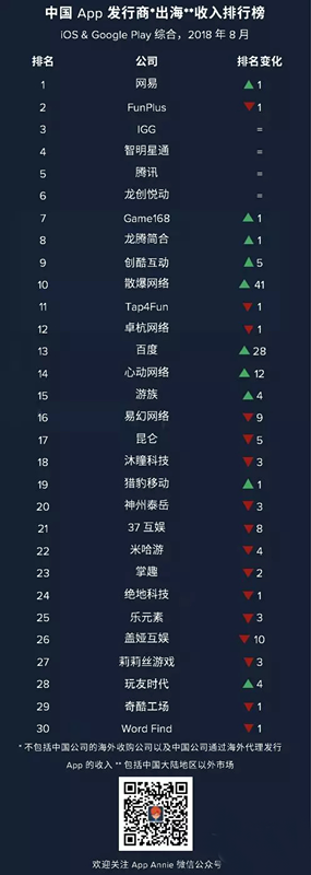 近期,Sensor Tower 和 App Annie 双双发布了 8 月出海游戏厂商收入排行榜,网易成为大赢家:不仅《荒野行动》成为 8 月出海收入第一,也推动网易成为收入第一出海厂商。