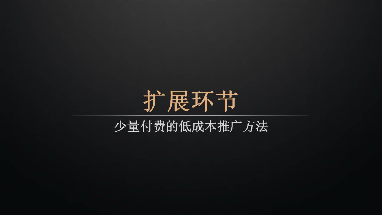 今天讲扩展环节,前面免费的推广方式讲了很多,这节课讲一些少量付费的成本比较低的推广方式。