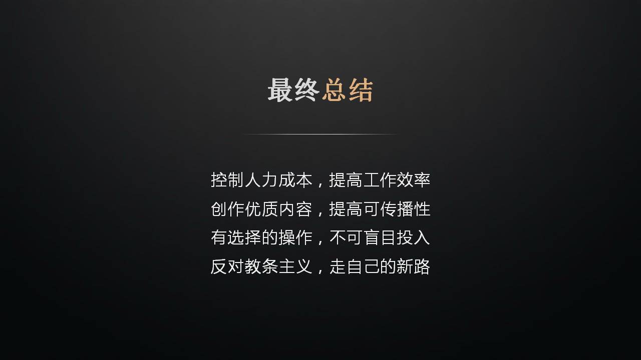 反对教条主义,走自己的新路。不要照搬照抄咱们课程里的内容,完全照搬一点意义都没有。想想在大学里学的知识有多少可以用到实际工作当中,一定要有自己的路,把这些知识转化成自己的。比如说自己找公会的做的比较好,了解得比较深,我自己成立一个公会行不行,或者那些比较好可以组合着来。在实际操作运营中总结选择。